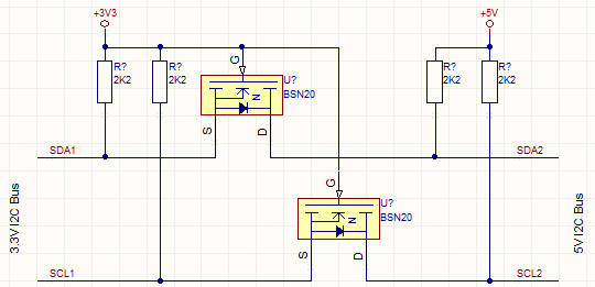 Any I2C device pulling down its own bus must also be able ot sink the pull-up resistor current of the other bus.