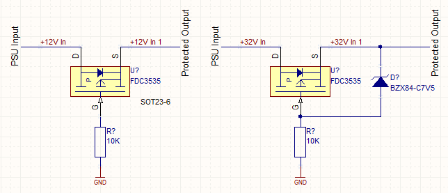 Also consider how you will dissipate a voltage that becomes too high from a motor behind the protected side, to ensure the mosfet max voltage specifications are not exceeded.