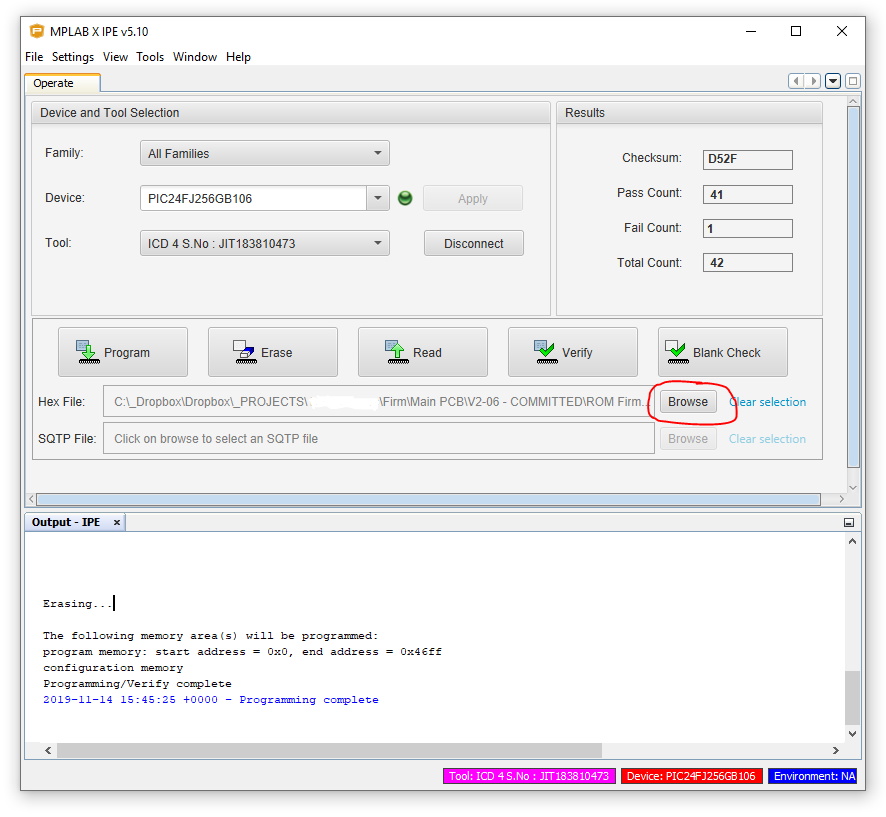 The “Output IPE” output window at the bottom of the screen will tell you if the programming operation was successful or not.