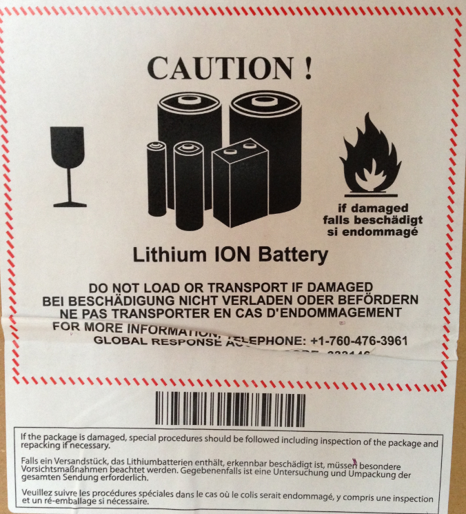 Example of a lithium battery warning label used by Amazon in the UK late 2013